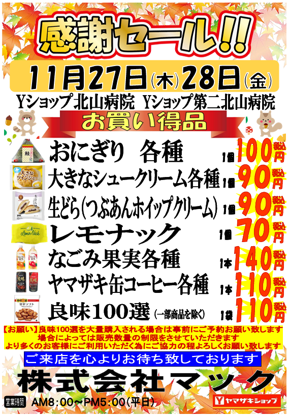 いつもありがとうございます!11月は日頃の感謝を込めて、お客様感謝セールを開催します。