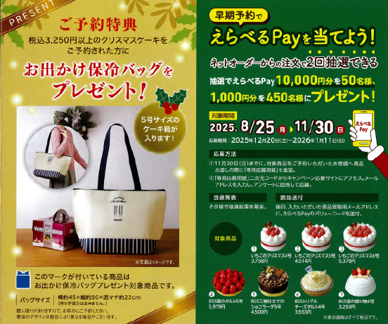クリスマスケーキ(税込3,250円以上)をご予約いただいたお客様に、
